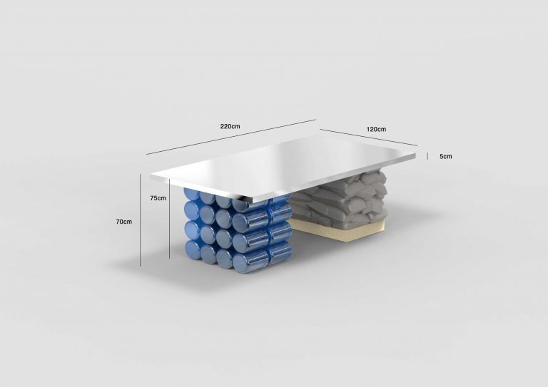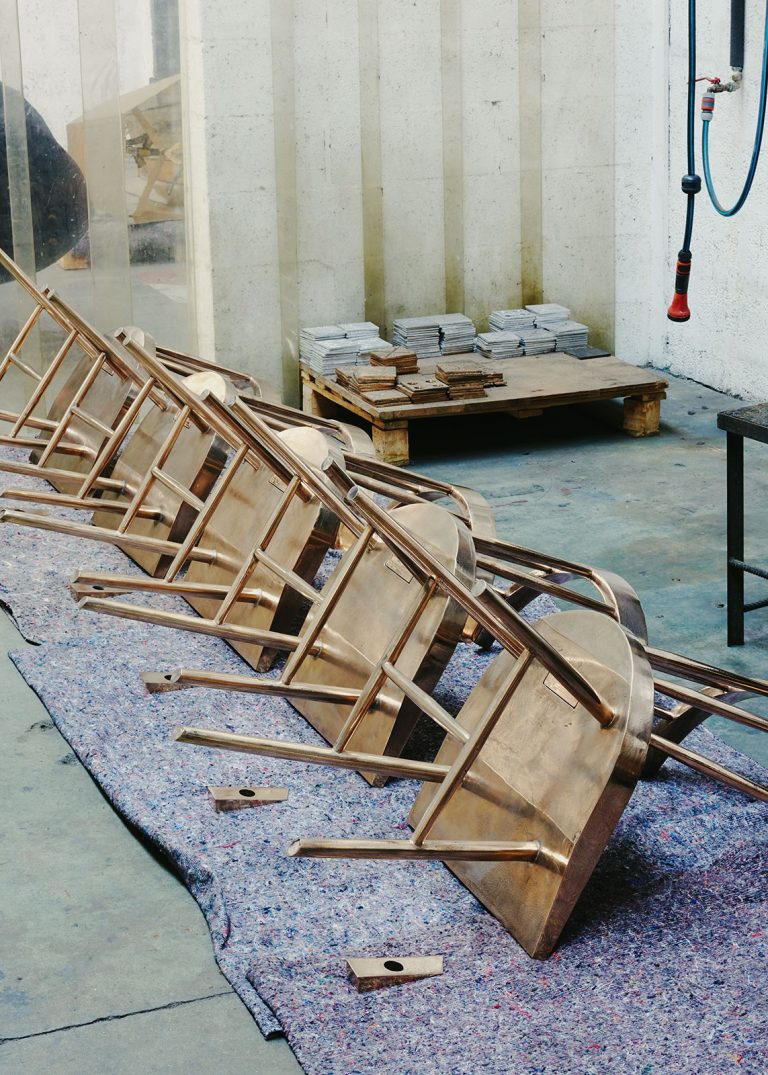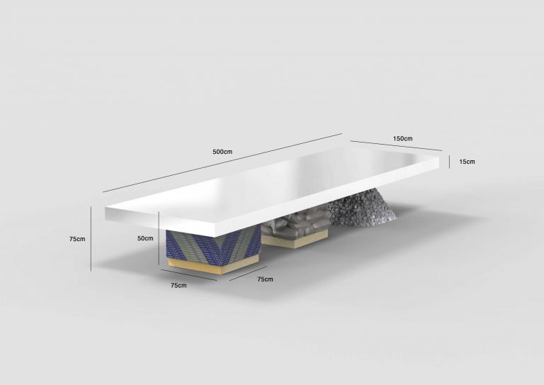 Efflorescence: the collection’s name seems paradoxical for what appears at first to be solid blocks of reality to sit, gather, and look at oneself. Beyond the sharp fact that it is always fruitful to deal with paradoxes, this botanical term reflects the production method of the pieces. Like these wildflowers that fit into the interstices and corners of urban space, the holes, formal accidents, and graffiti that cover and personalize— in different ways each time—the concrete surface offers a visual and emotional texture to recharge our immediate environment: a landscape where the rigidity of structures and urban planning meets the randomness of organic growth and human appropriation and mark-making.